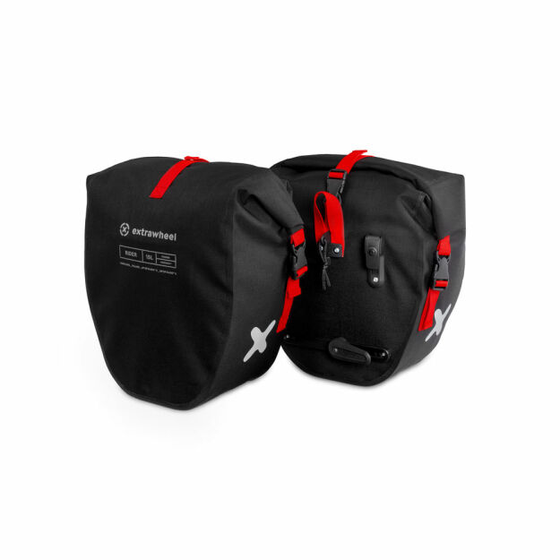 Rider Premium bicycle panniers with a total capacity of 30 liters are made of super-durable Cordura. They are versatile – they fit both the front and rear bicycle racks, and you can go shopping in the city and on a cycling trip with them. Rider Premium panniers are waterproof after being four times rolled up and fastened with downward buckles. Another advantage of the Rider Premium bicycle panniers is their very easy assembly, using the German Rixen & Kaul system. It is worth emphasizing that the Rixen & Kaul grips are adapted for tubes with smooth adjustment, with a diameter of 6-16 mm. The elegant design, consistent with other Extrawheel products, with clearly visible reflections, not only increases the user's safety but also allows him to stand out on the cycle trail.